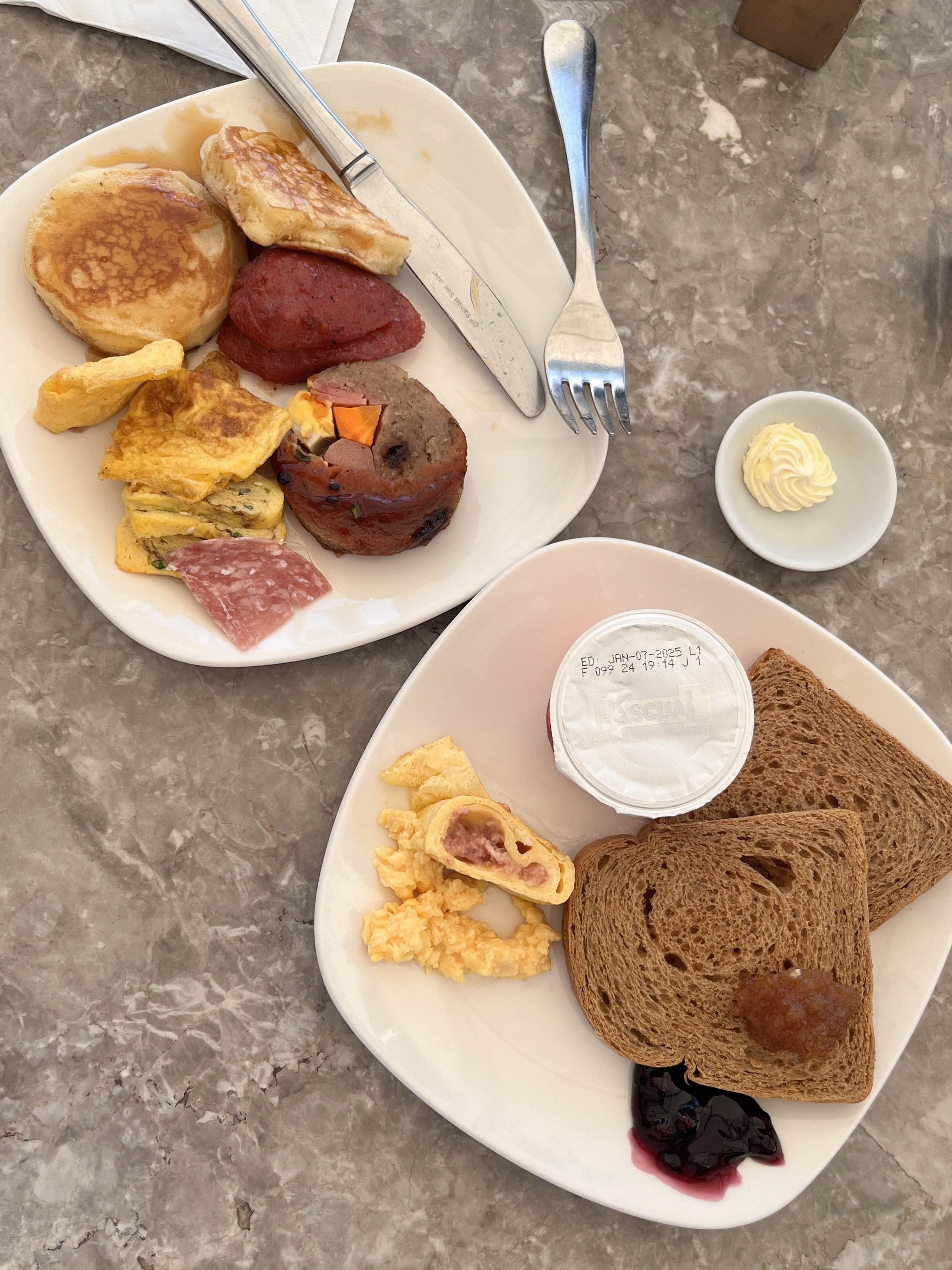 조식 또한 나쁘지 않으며 팬케이크와 오믈렛은 아주 만족스러웠습니다.